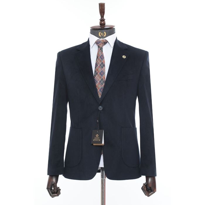 KLASİK LACİVERT MAVİ SARI ÇİZGİ DETAYLI CEKET